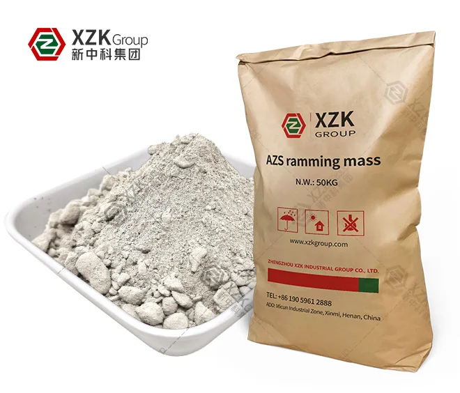 AZS Ramming Mass is a monolithic refractory material. It is made by using crushed particles (≤5mm) of electro - fused zirconia - corundum (AZS) bricks as aggregates, along with binders and auxiliary materials. This product combines the excellent properties of electro - fused zirconia - corundum bricks and the convenience of ramming construction.
